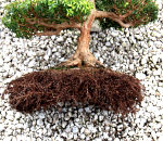 Nach vier Jahren in derselben Bonsaischale wurde es höchste Zeit zum Umtopfen. Zwischendurch wurde zwar die obere Erdschicht einige Male erneuert, da sich unschöne Kalkreste abgesetzt hatten aber der Wurzelballen blieb dabei unberührt. Dieser hatte inzwischen die Schale komplett ausgefüllt und war ziemlich verfilzt.